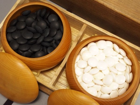 貴重な国産蛤の碁石。黒は那智黒。