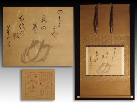 江戸千家を創設者、茶人 川上不白の貴重な肉筆画賛。